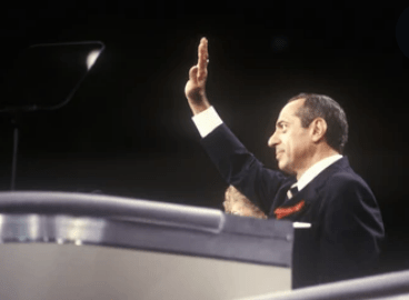 Former New York Governor Mario Cuomo addresses the crowd at the 1992 Democratic National Convention at Madison Square Garden, New York.